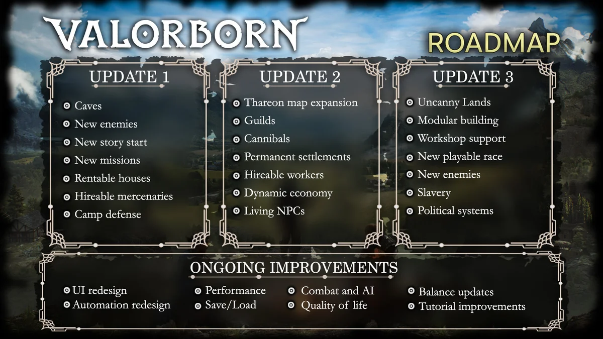 Le lancement en Early Access d’un jeu comme Valorborn n’est pas une fin en soi, mais plutôt un point de départ. Et ça, le studio semble l’avoir parfaitement compris. La roadmap récemment dévoilée ne cherche pas à impressionner avec des promesses irréalistes, mais à poser une progression logique, presque méthodique, dans la manière dont le jeu va évoluer. Ce qu’on a aujourd’hui entre les mains n’est qu’une fondation, et toute la suite du développement repose sur cette idée : construire progressivement un monde cohérent, stable et riche.